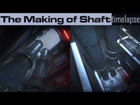 The lights spilling in from outside through the gratings are pretty good, but I would have set the atmospheric value a lot higher. This is a visual exercise, and there aren't going to be any players getting their vision obscured in atmospheric soup, so feel free to have those rays coming in hard, especially those spilling in from the right. The lighting scheme is pretty good, mirroring the yellow and blue/grey textures used.